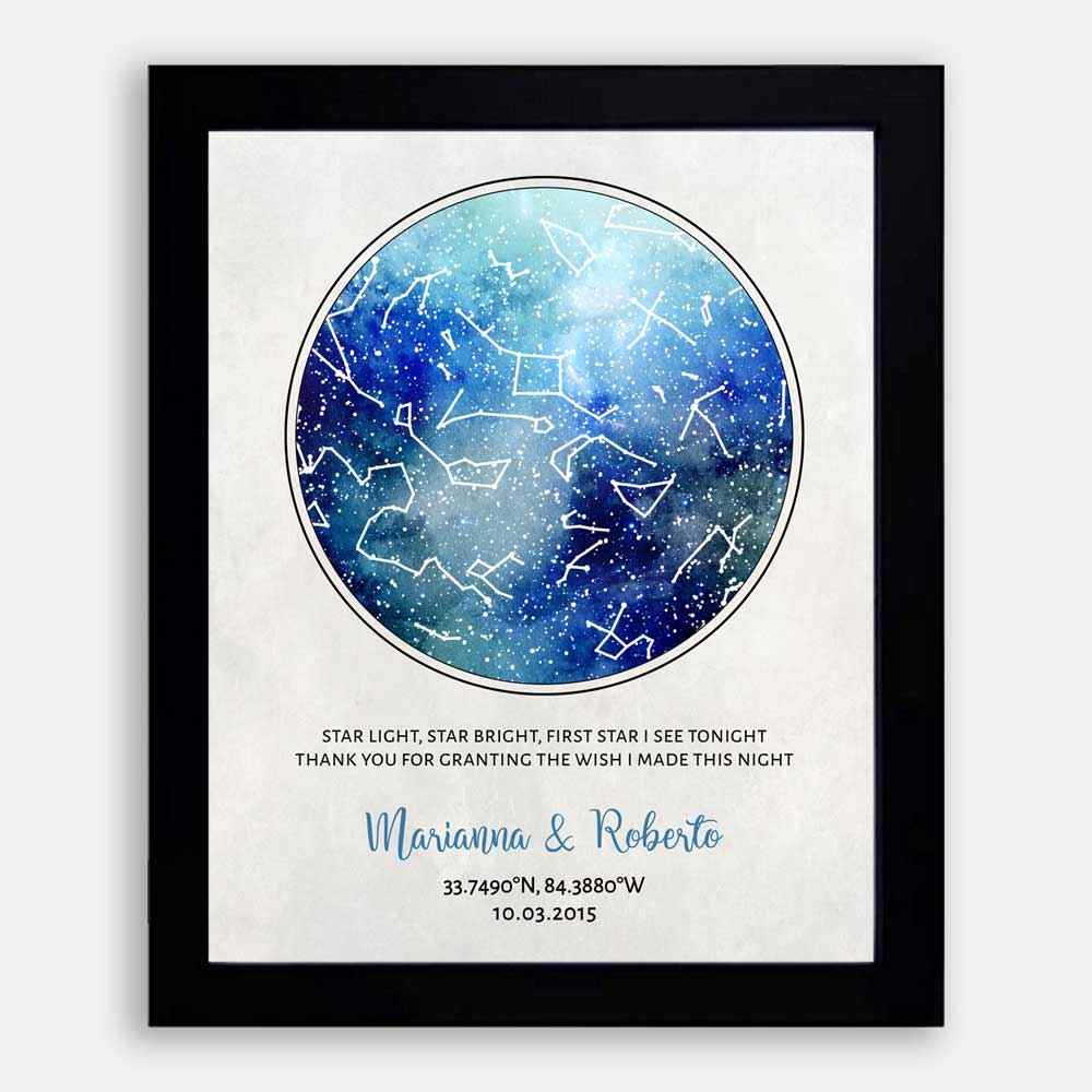 10 Year Anniversary, Custom Star Map, Tin Anniversary, Constellation , Wedding Day Astrology Gift, Night Sky Print, Star Chart #1750