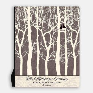 40 Year Anniversary Gift Bare Trees Forest Taupe Aqua Black Birds Wedding Gift #1193