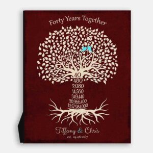 40th Year Anniversary Date Gift Personalized Family Countdown Ruby Red Family Tree Roots #1454
