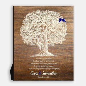 5th Anniversary Personalized Family Wedding Tree Gift Faux Wood Sapphire Gift For Couple #1368