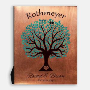 7 Year Anniversary Personalized Family Wedding Tree Faux Copper Turquoise Gift For Couple #1377