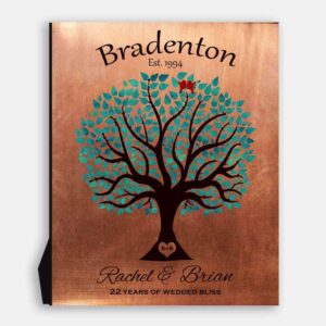 22nd Anniversary Personalized Traditional Wedding Tree Faux Copper Turquoise Gift For Couple #1385