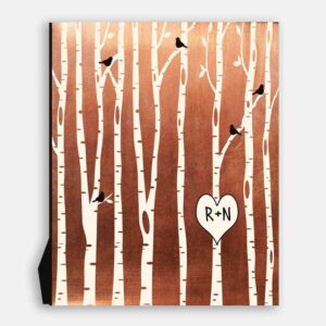 7 Year Anniversary Birch Trees Forest Wedding Gift Faux Copper Bare Trees 7th Seven Year Copper Personalized #1428