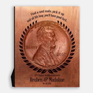 7 Year Anniversary Find a Penny Good Luck Personalized Faux Copper 7th Anniversary Date Gift Wall #1467