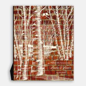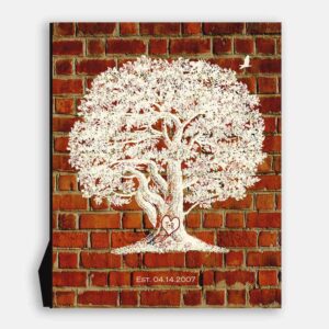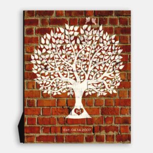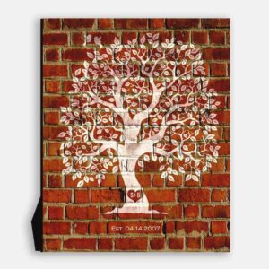 8th Anniversary Personalized Gift For Couple Family Tree Faux Brick Pottery Clay Background #1384