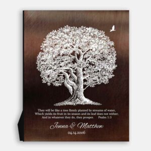 Faux Brass Anniversary Personalized Family Oak Tree 8th Wedding Gift For Couple For Him #1379