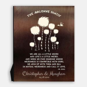 8 Year Anniversary Gift Dr. Seuss Personalized Truffula Trees A Little Weird Quote Faux Bronze Brass #1471