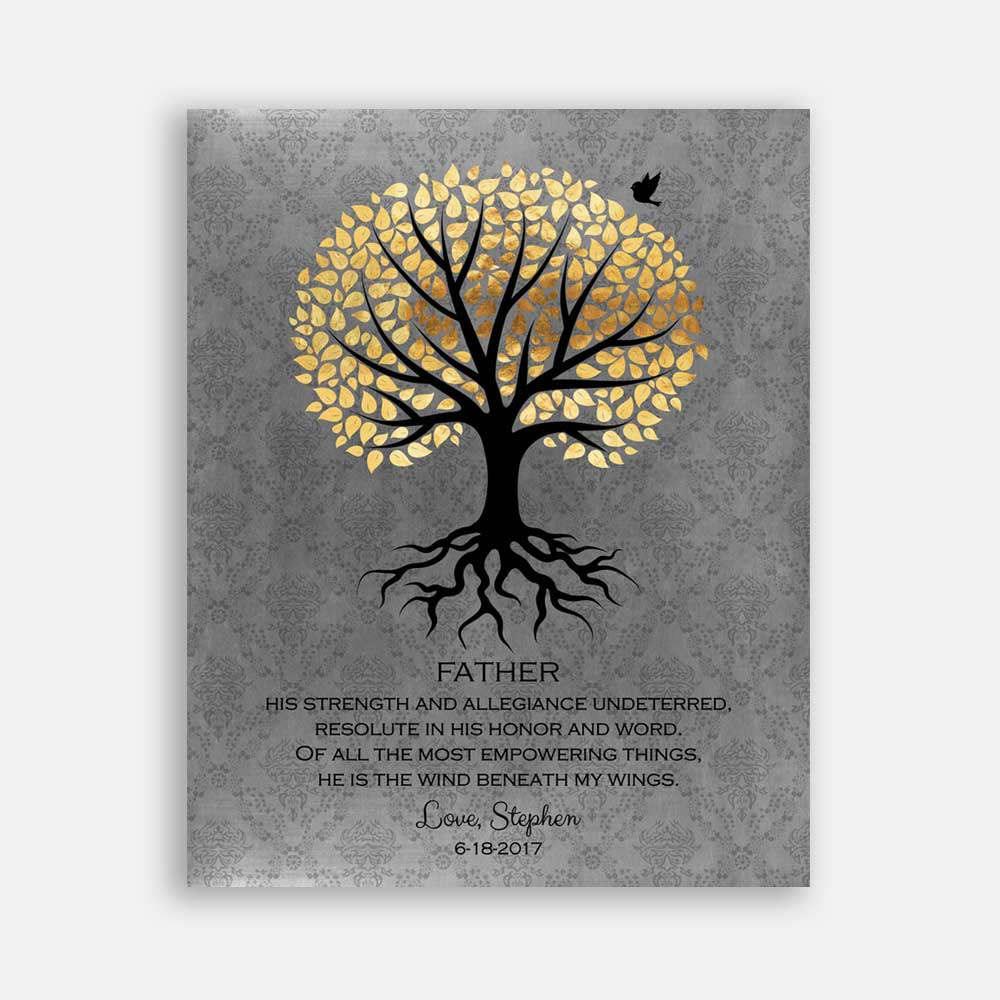 A Thank You Gift For Dad, Personalized Gift For Father From Son With A Heartfelt Poem, Depicting Rooted Tree, Golden Leaves & A Bird, 1058