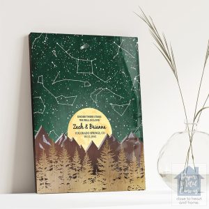 Bronze Mountains Trees Camping Star Map Anniversary Wall Plaque Gift for Couple LTC-2172
