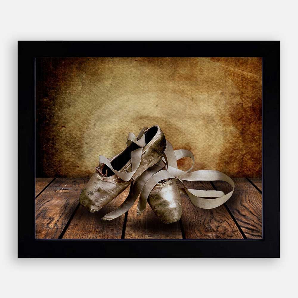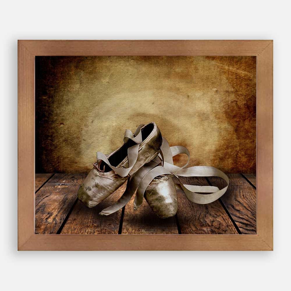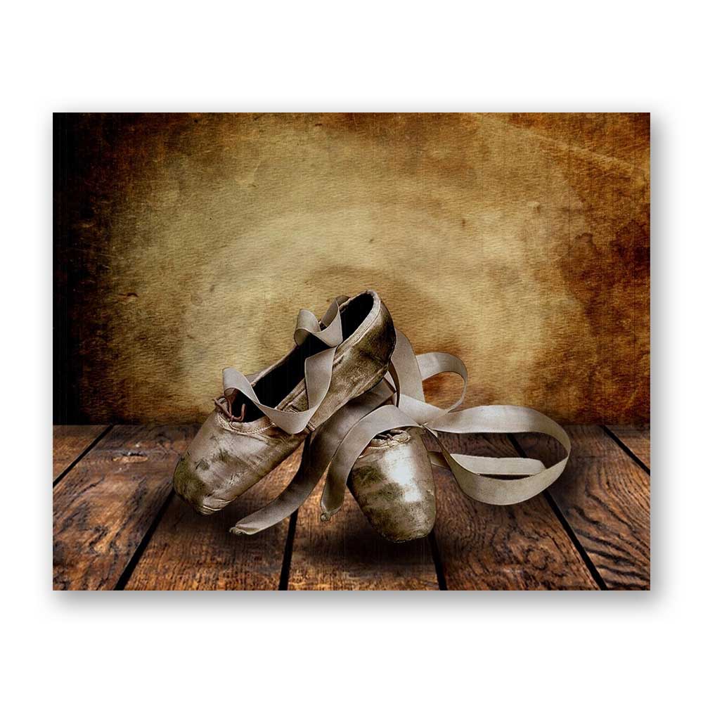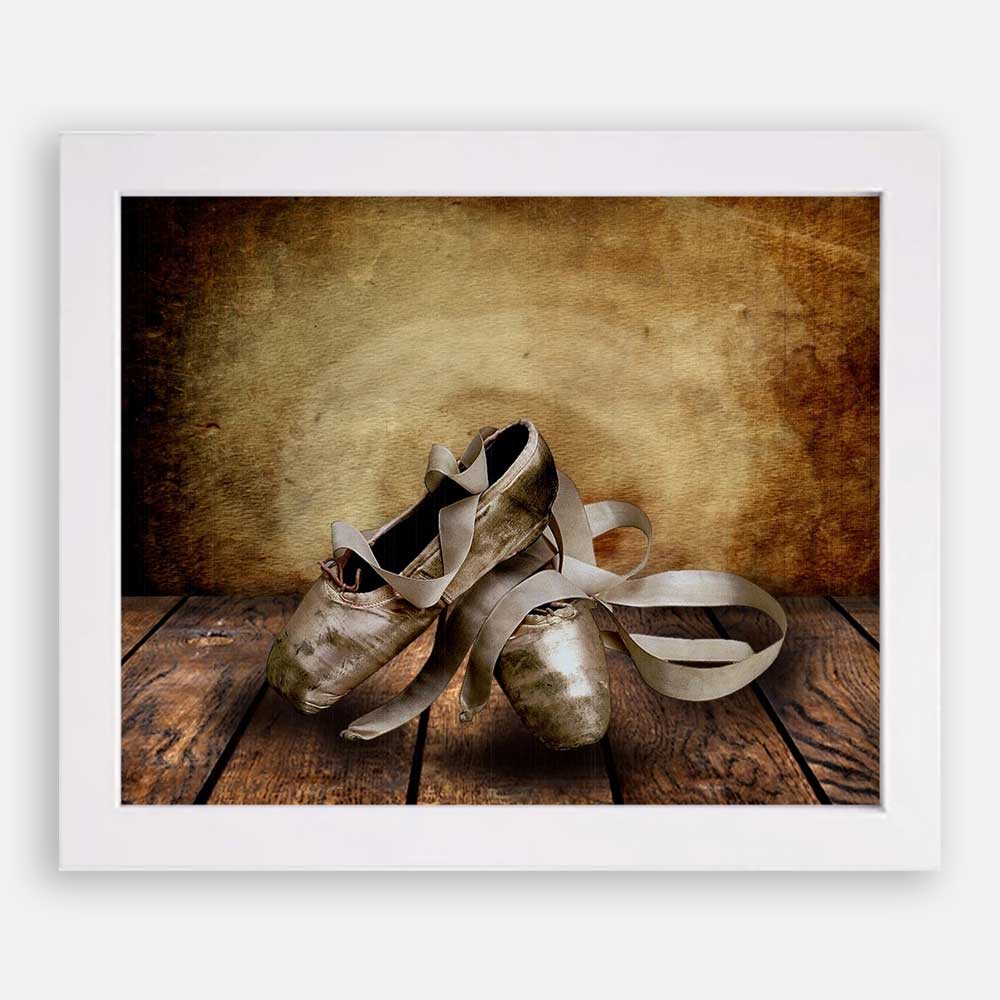 Ballet Pointe Shoes on Wood Table Vintage Background Personalized Art Print For Childrens Room Girls Room Nursery Dance #TCH-1003