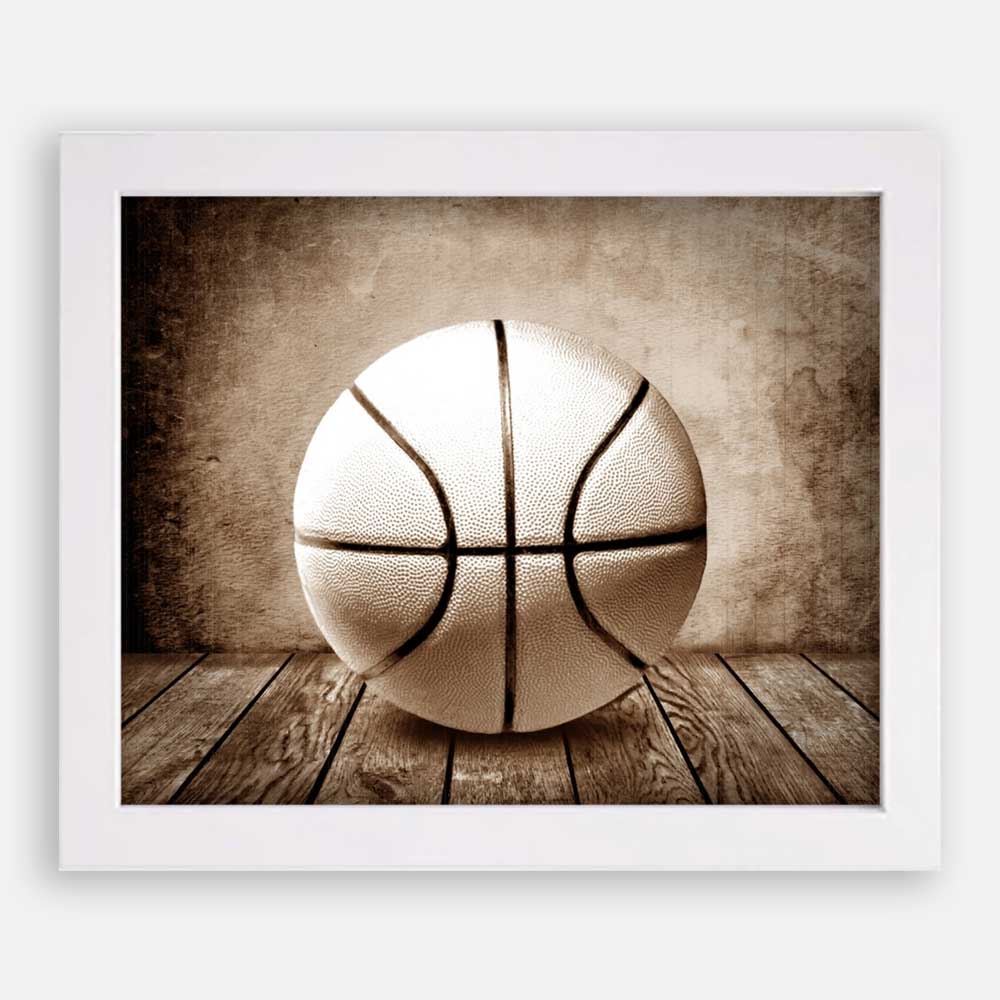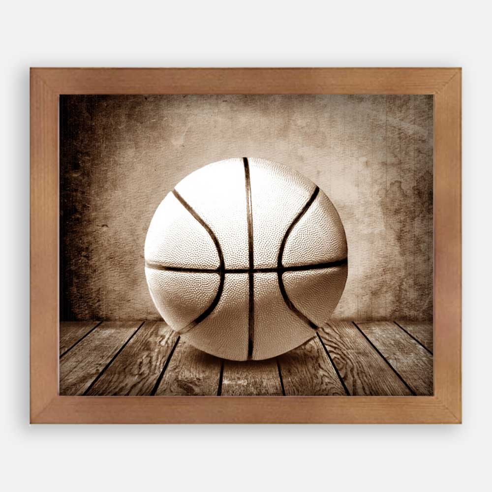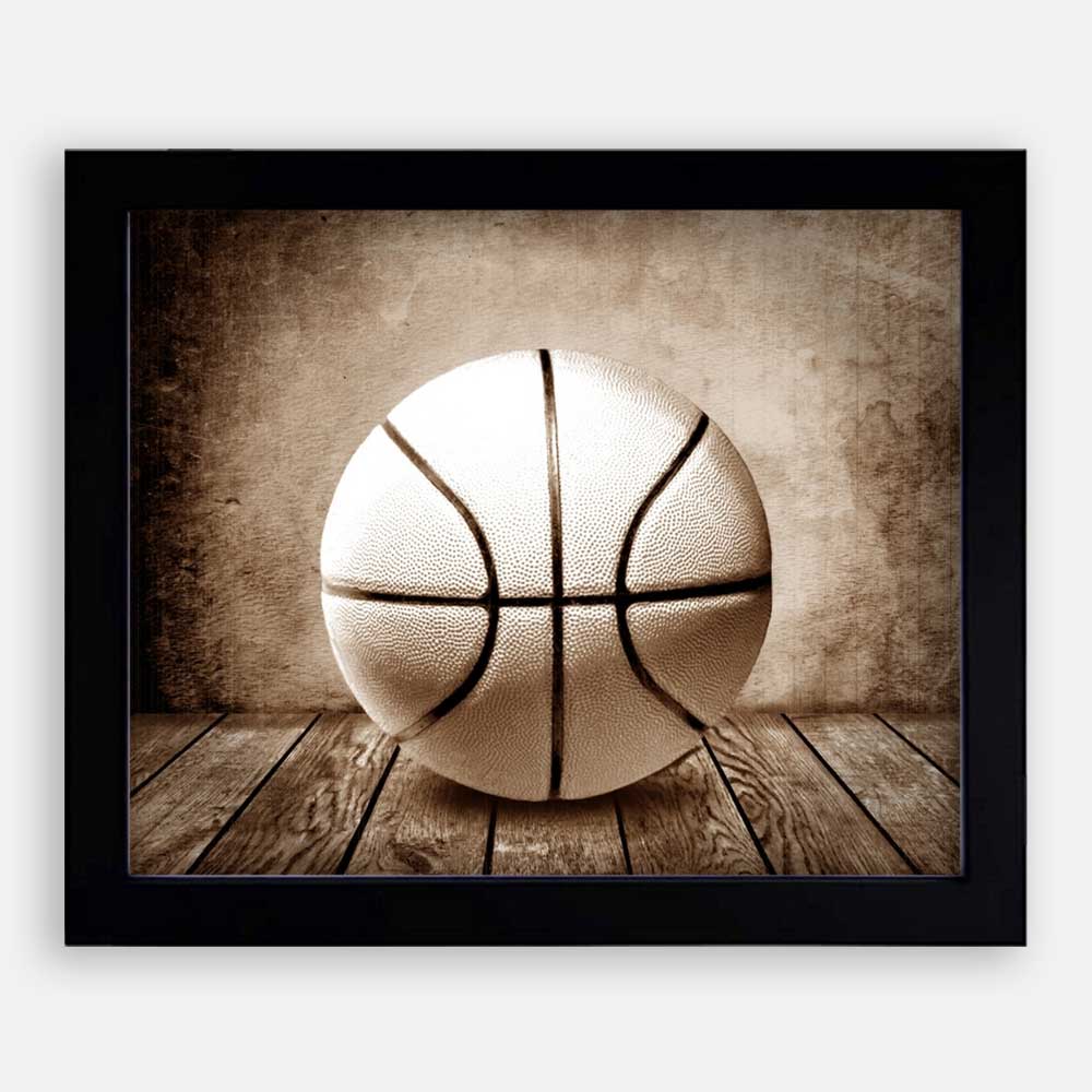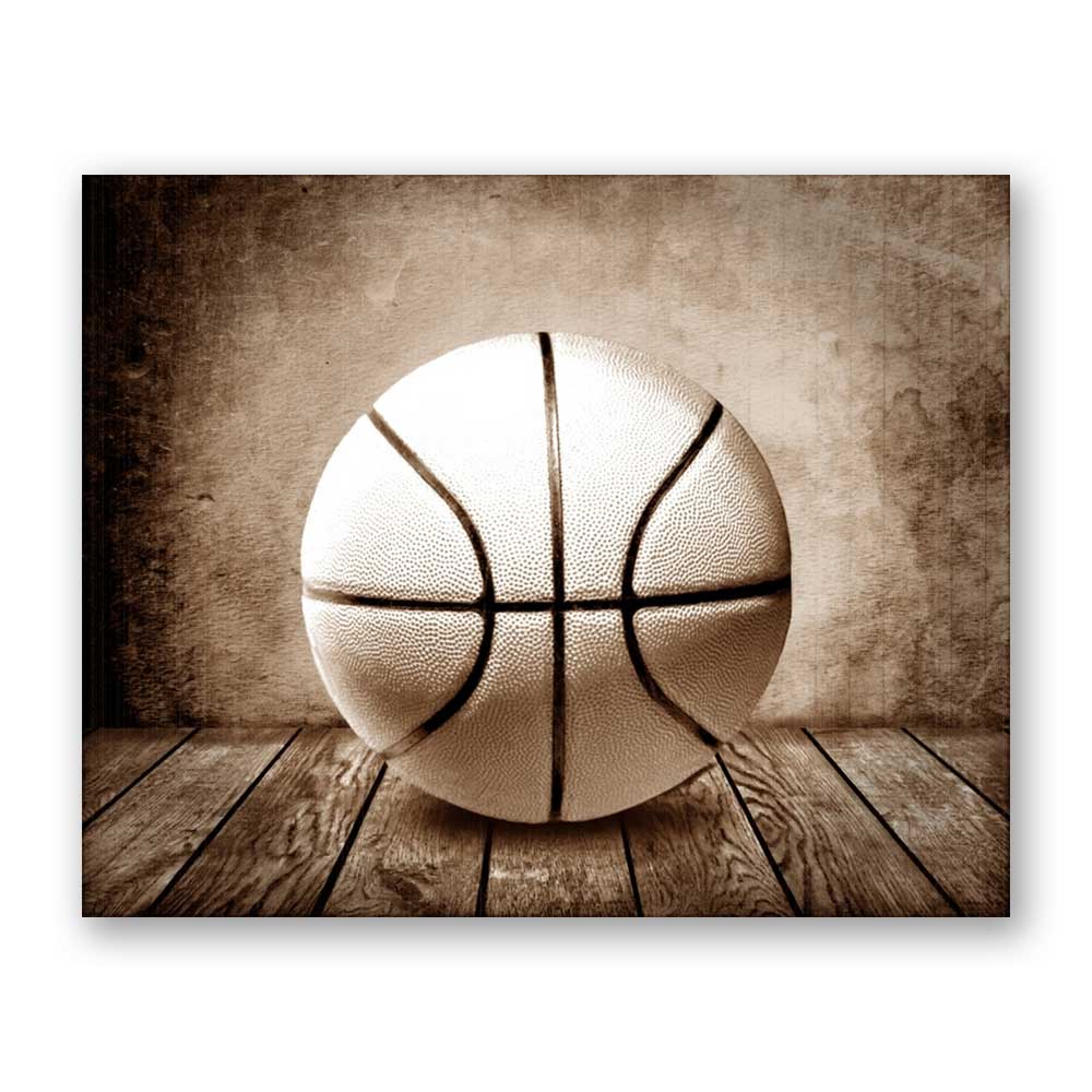 Basketball Sepia Faded on Wood Table Vintage Background Personalized Sports Art Print For Childrens Room Boys Room Nursery Man Cave #TCH-1008