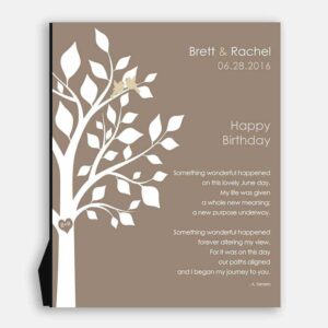 Personalized Gift For Couple, Best Anniversary Gift, A Tree, and 2 Love Birds, A Handcrafted Gift With A Love Poem Etched Over It, 1028