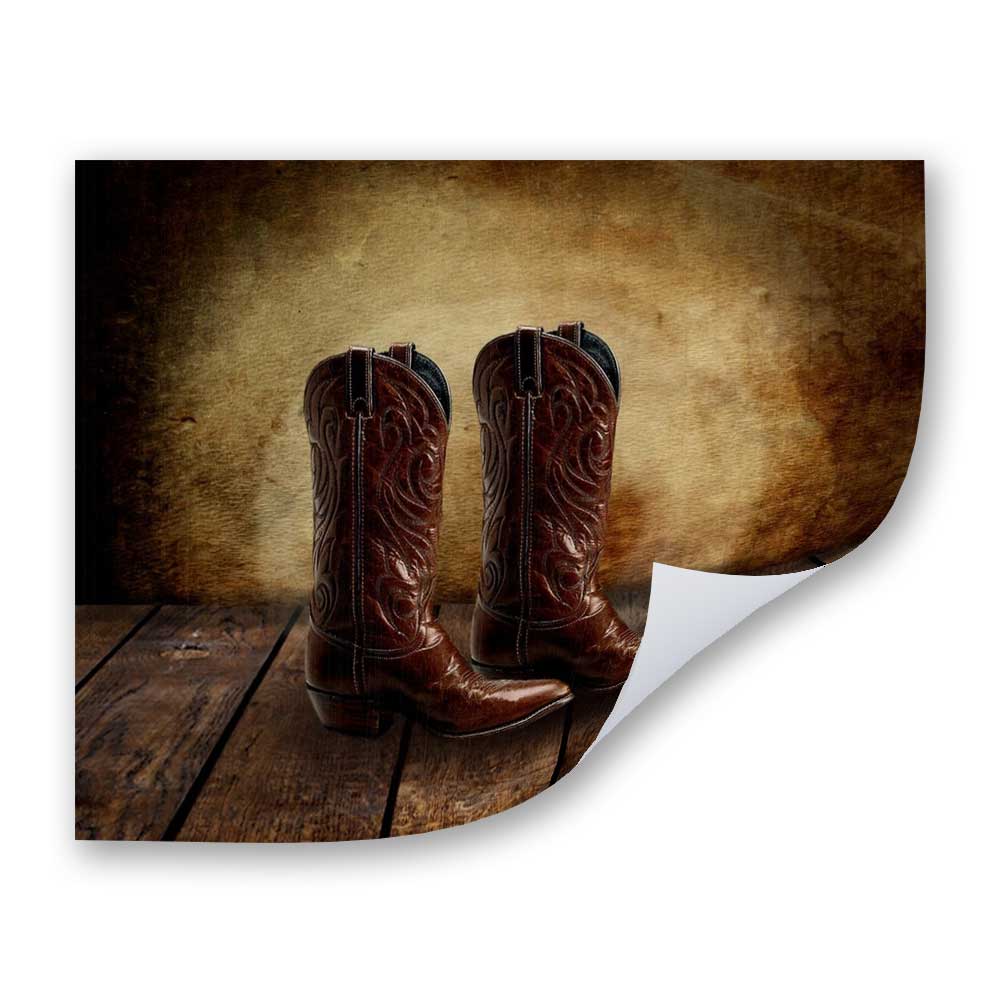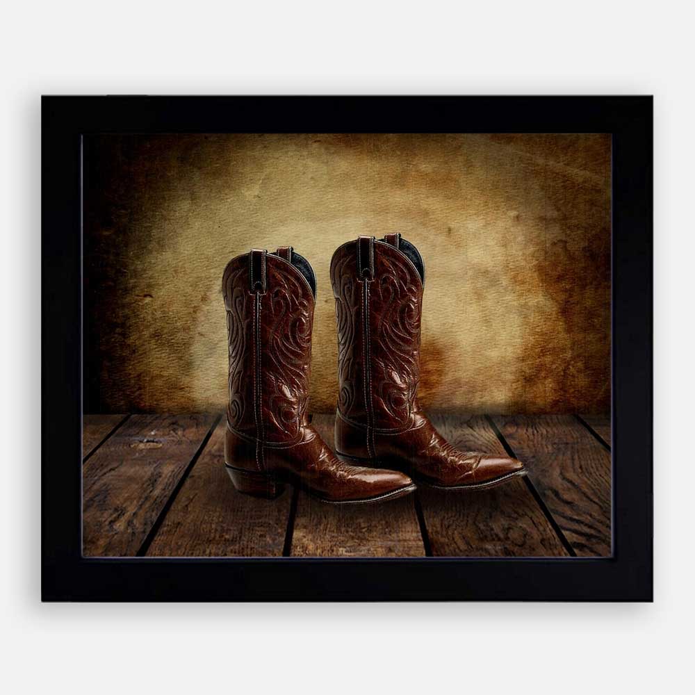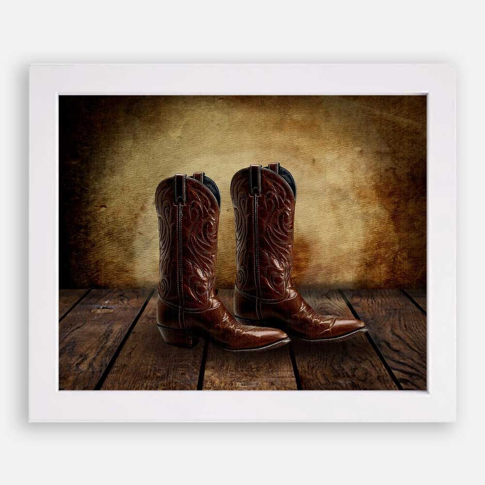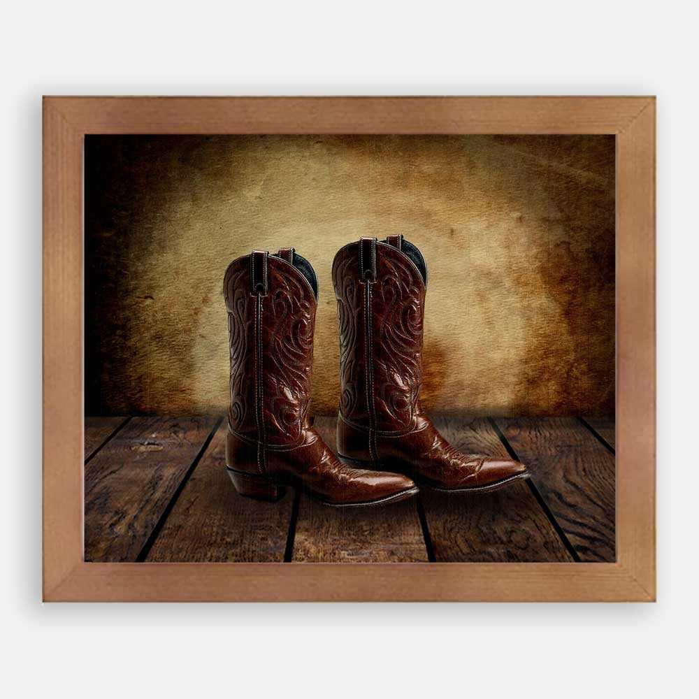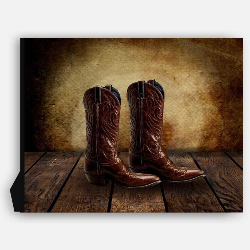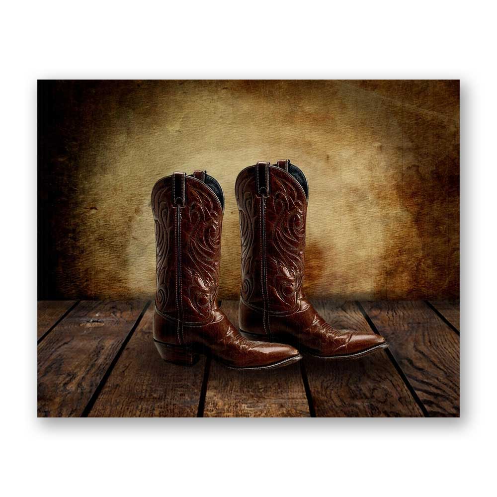 Cowboy Boots on Wood Table Vintage Background Personalized Cowboy Western Art Print For Childrens Room Boys Room Nursery #TCH-1010
