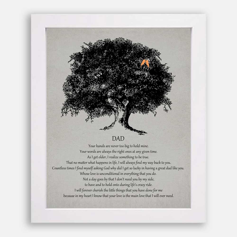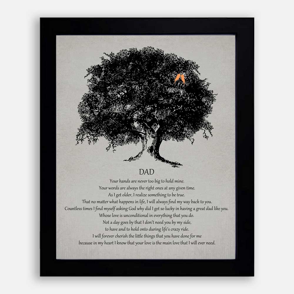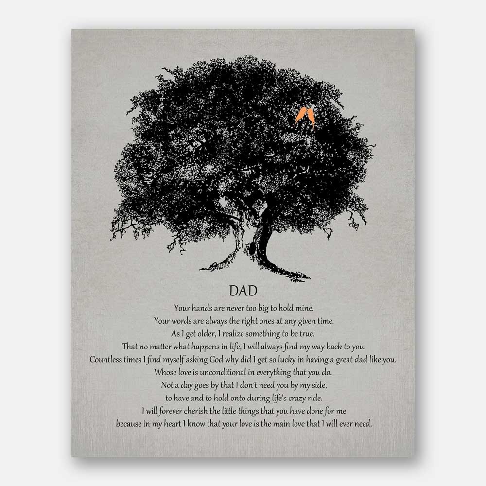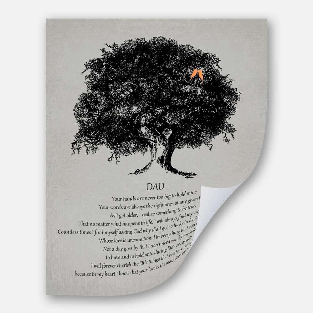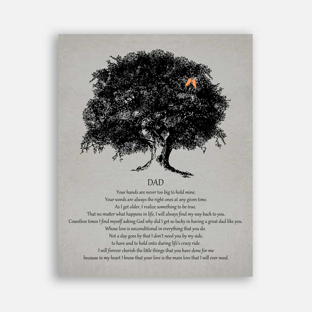 Dad Father of Bride Parents Black Oak Tree on Gray Your Hands Are Never Too Big To Hold Mine #CWA-1013