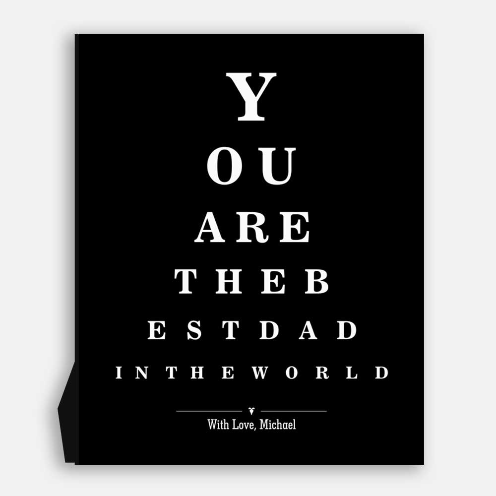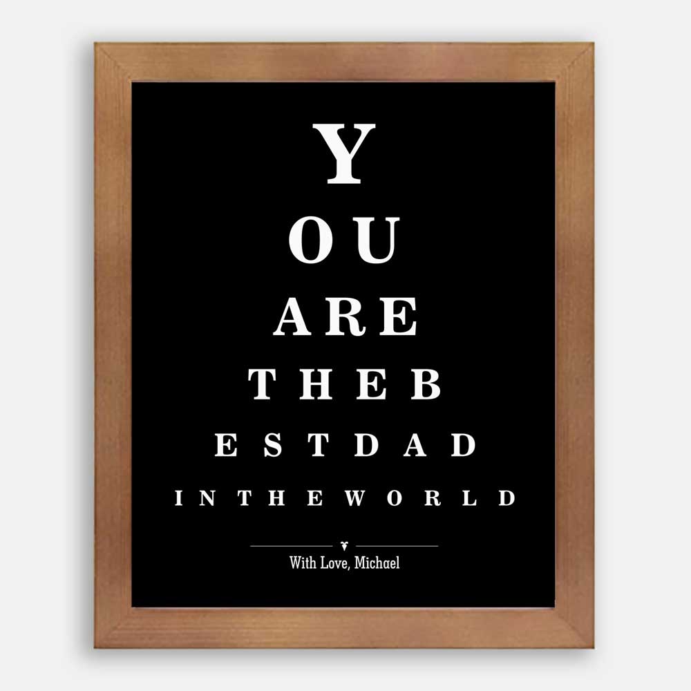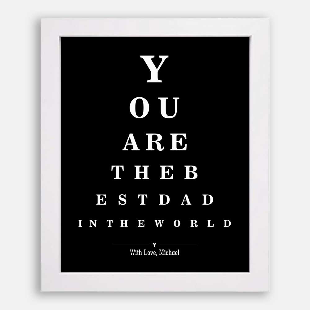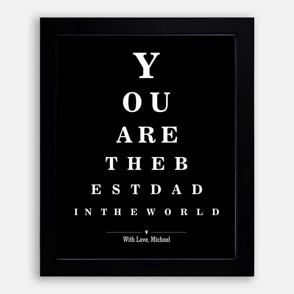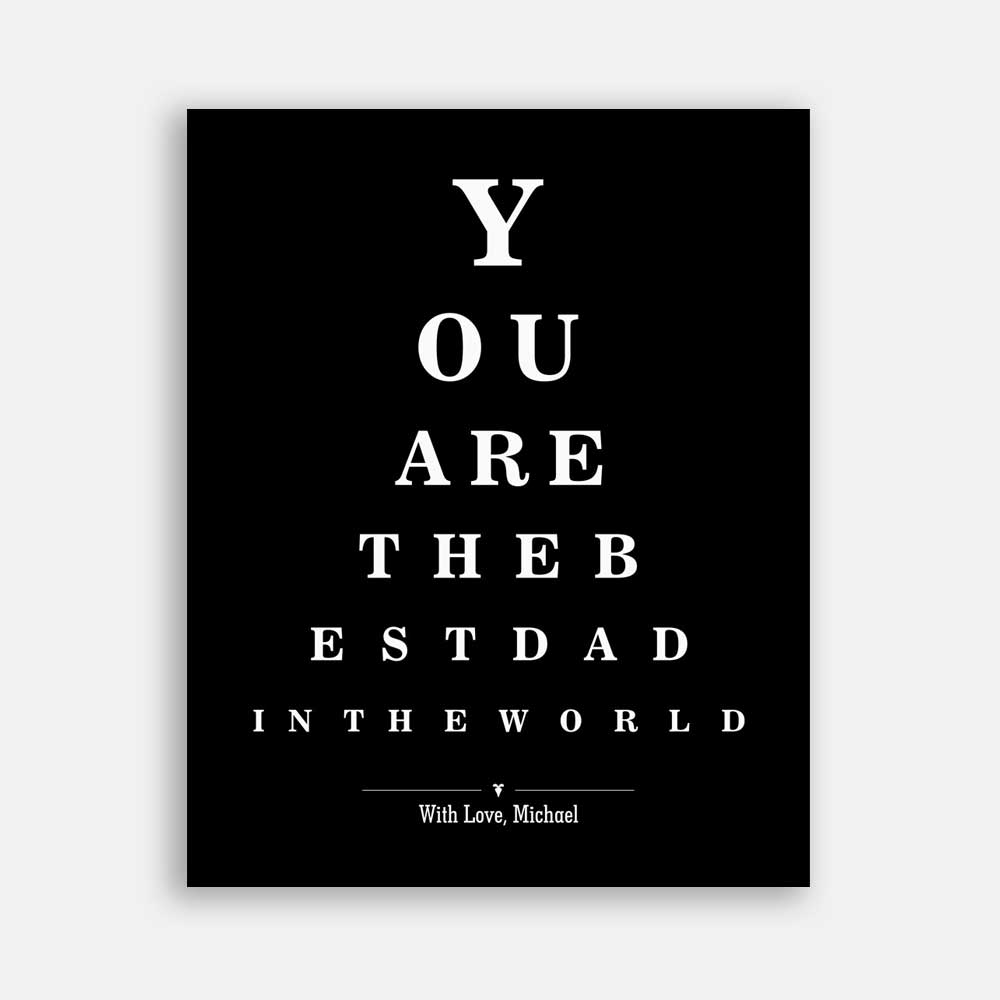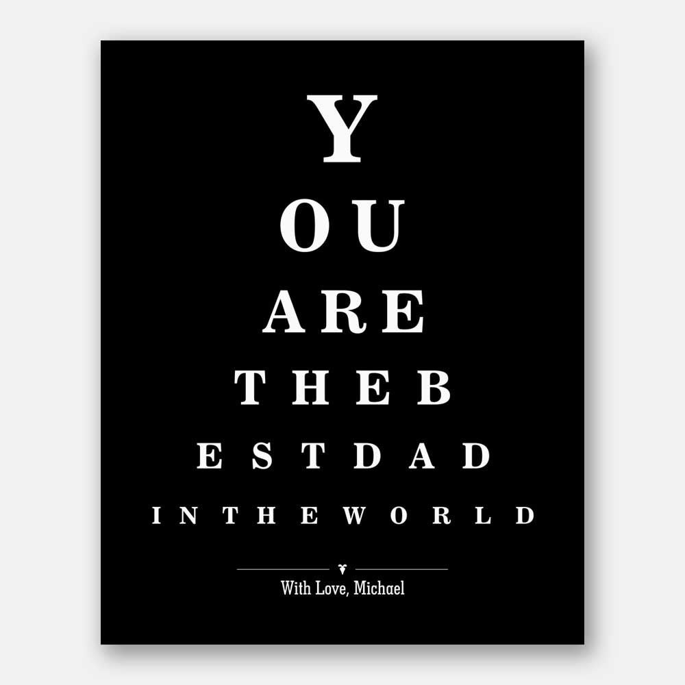 Dads Birthday Fathers Day Best Dad In The World Word Design Eye Chart on Black Background #CWA-1267