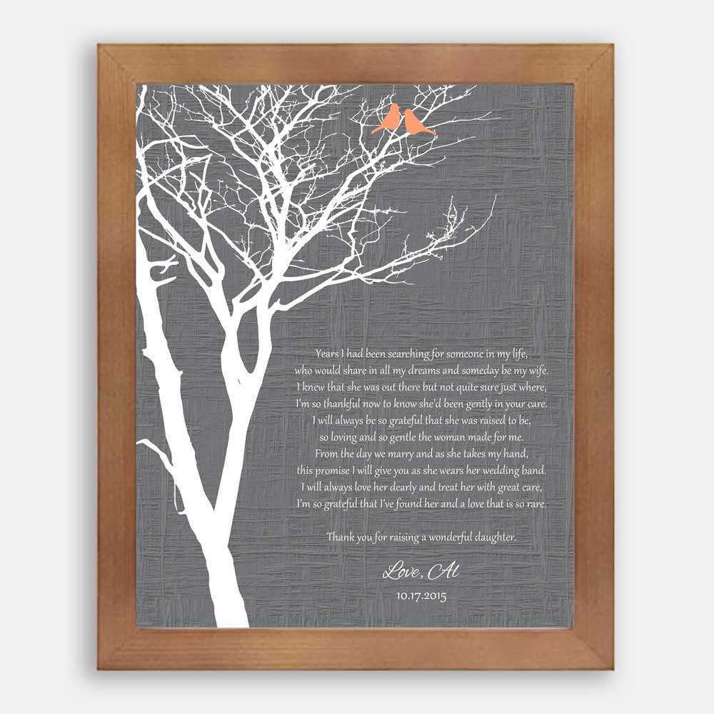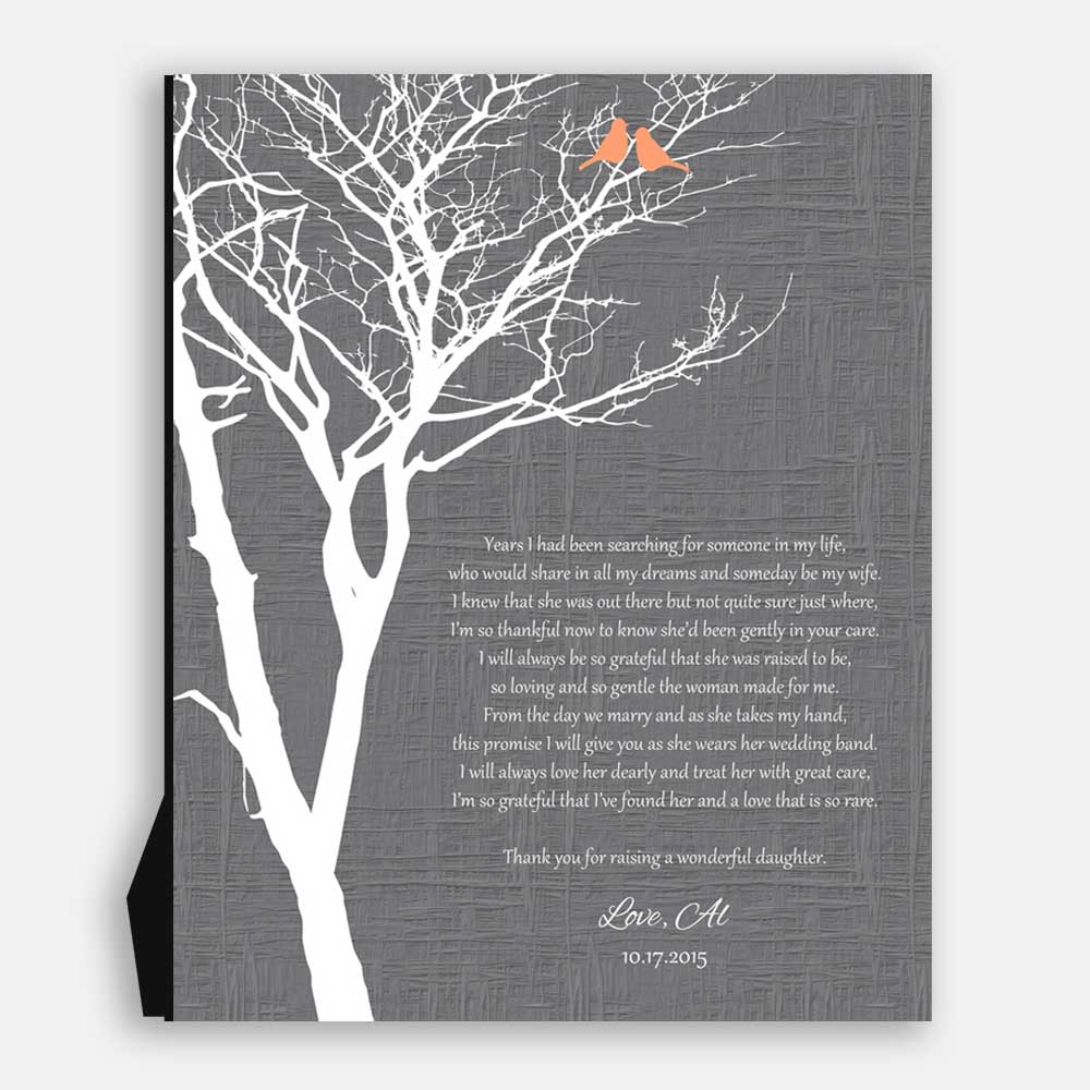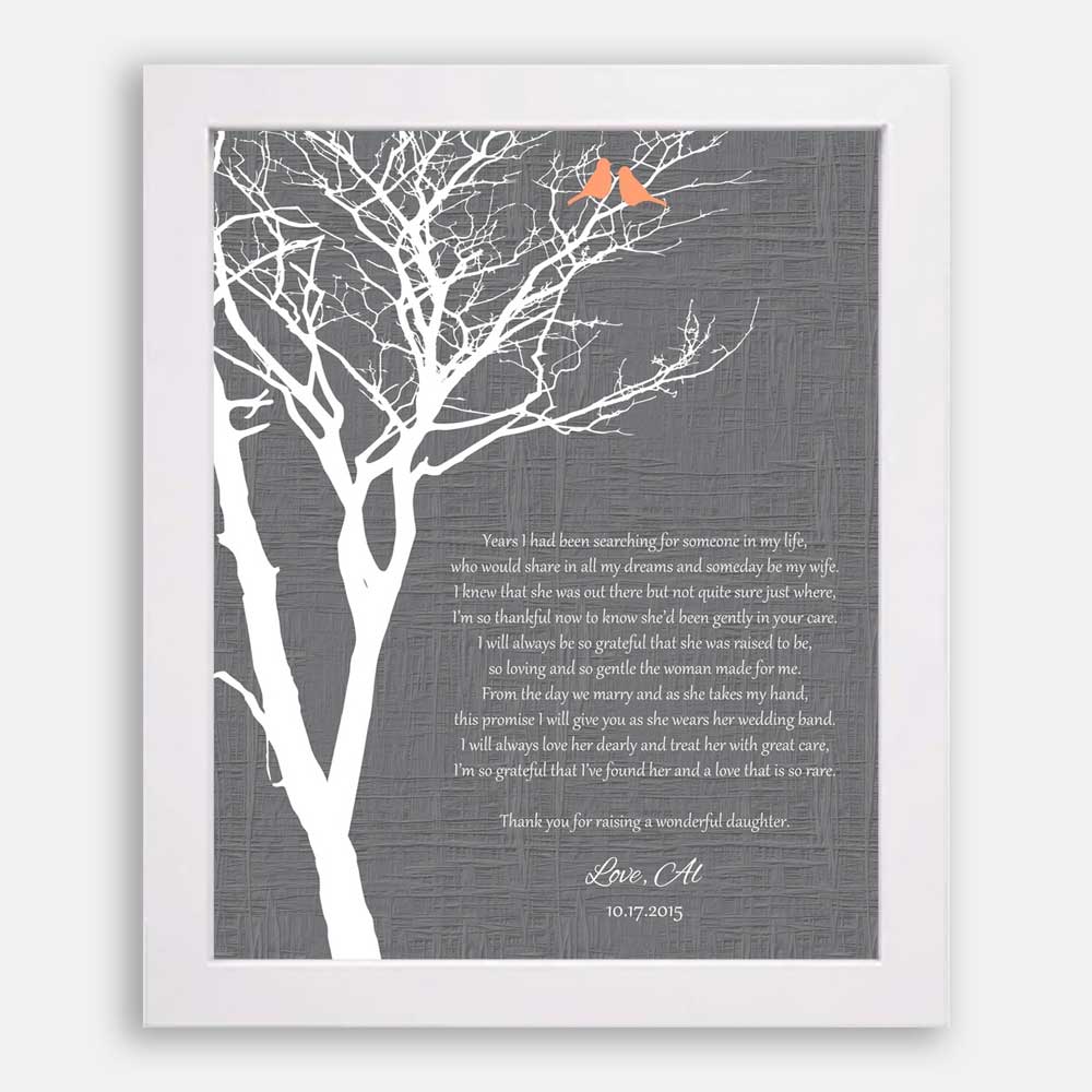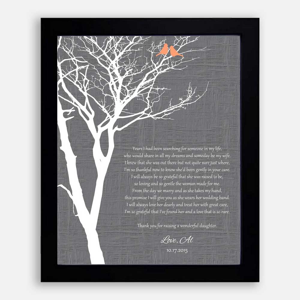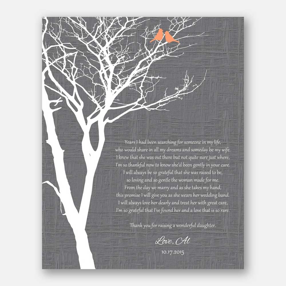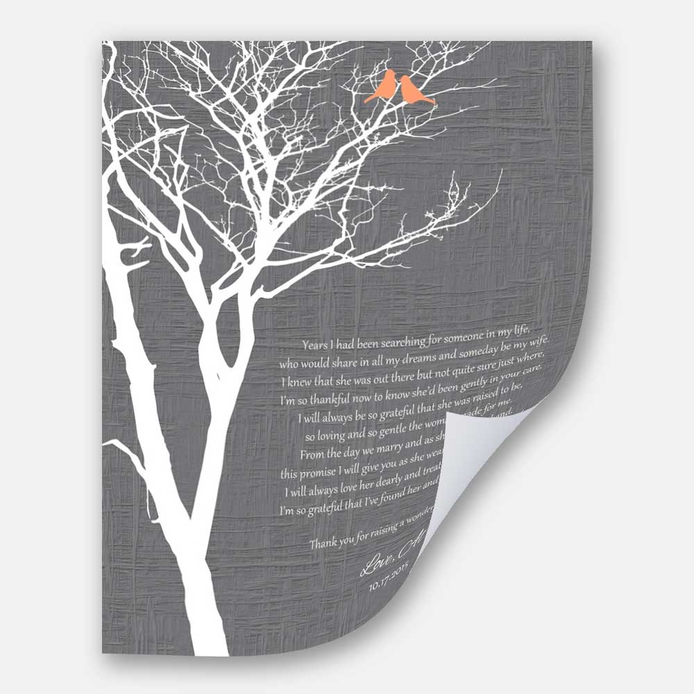 Mother of Bride Years I Had Been Searching Faux Gray Texture Background With Orange Love Birds #CWA-1007