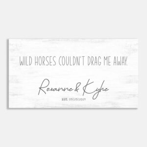 Wild Horses Couldn’t Drag Me Away – Post Pandemic Wedding Farmhouse Established Date Sign #FF-1047