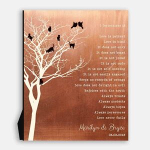 Tree of Cats Personalized Corinthians Love Is Patient Bare on Branches Faux Copper Background #1417