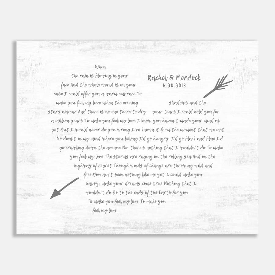 Personalized Wedding Vows or Song Lyrics in Heart with Shooting Arrow #FF-1039