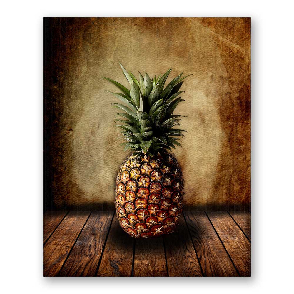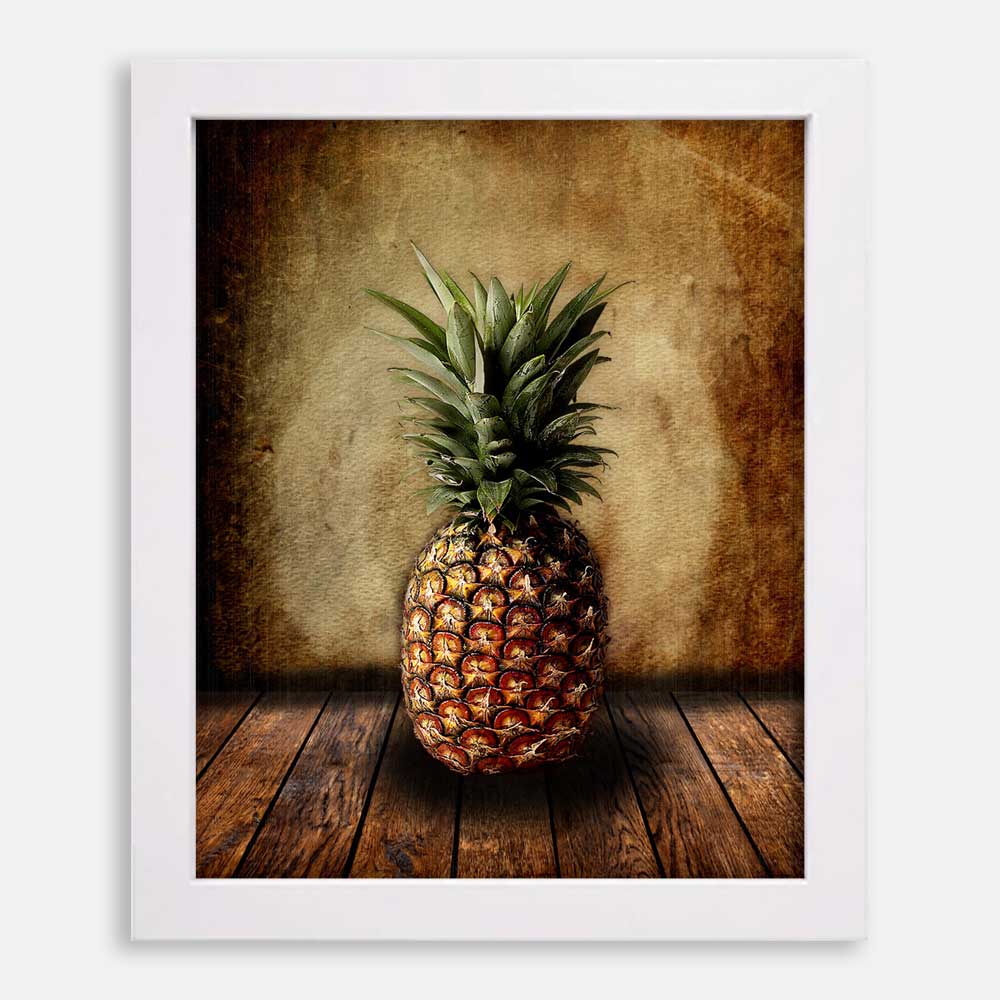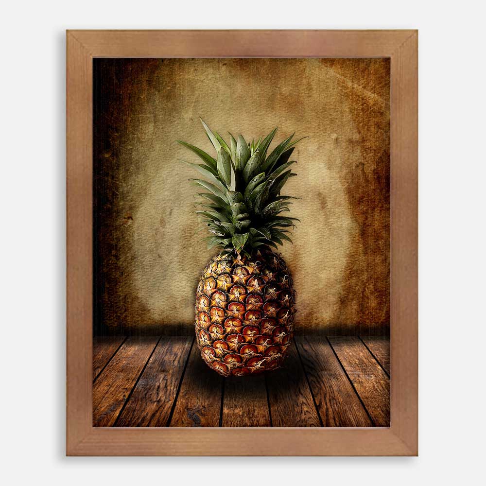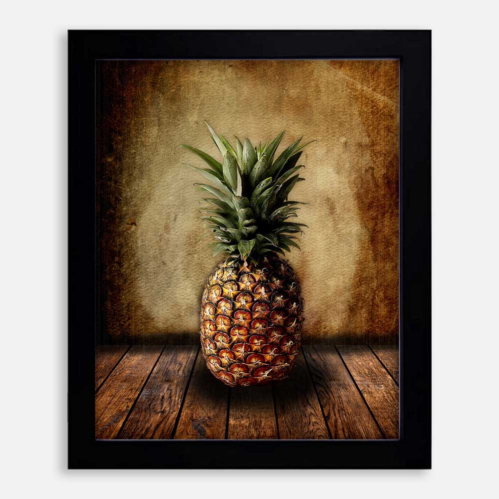 Pineapple on Wood Table Vintage Background Personalized Fruit Art Print #TCH-1024