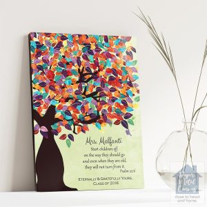 Uniquely personalized colorful puzzle tree teacher appreciation gift for educator, leadership appreciation, end of school and other appreciation occasions, featuring the depicted puzzle pieces autism tree quote colorful leaves. Create a deeply personal gift for any educator or schoolteacher with your personalized names, date and text. Alternatively, this design may also be customized for an acquaintance appreciation gift, leadership appreciation, end of school or completely custom events. Anything’s possible!