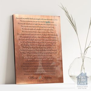 Copper Thank You Poem Wedding Wall Plaque Gift for Parents LTC-1182