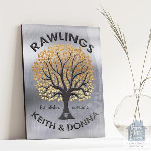 Tin Gold Tree Family Name 10th Anniversary Wall Plaque Gift for Couple LTC-1214