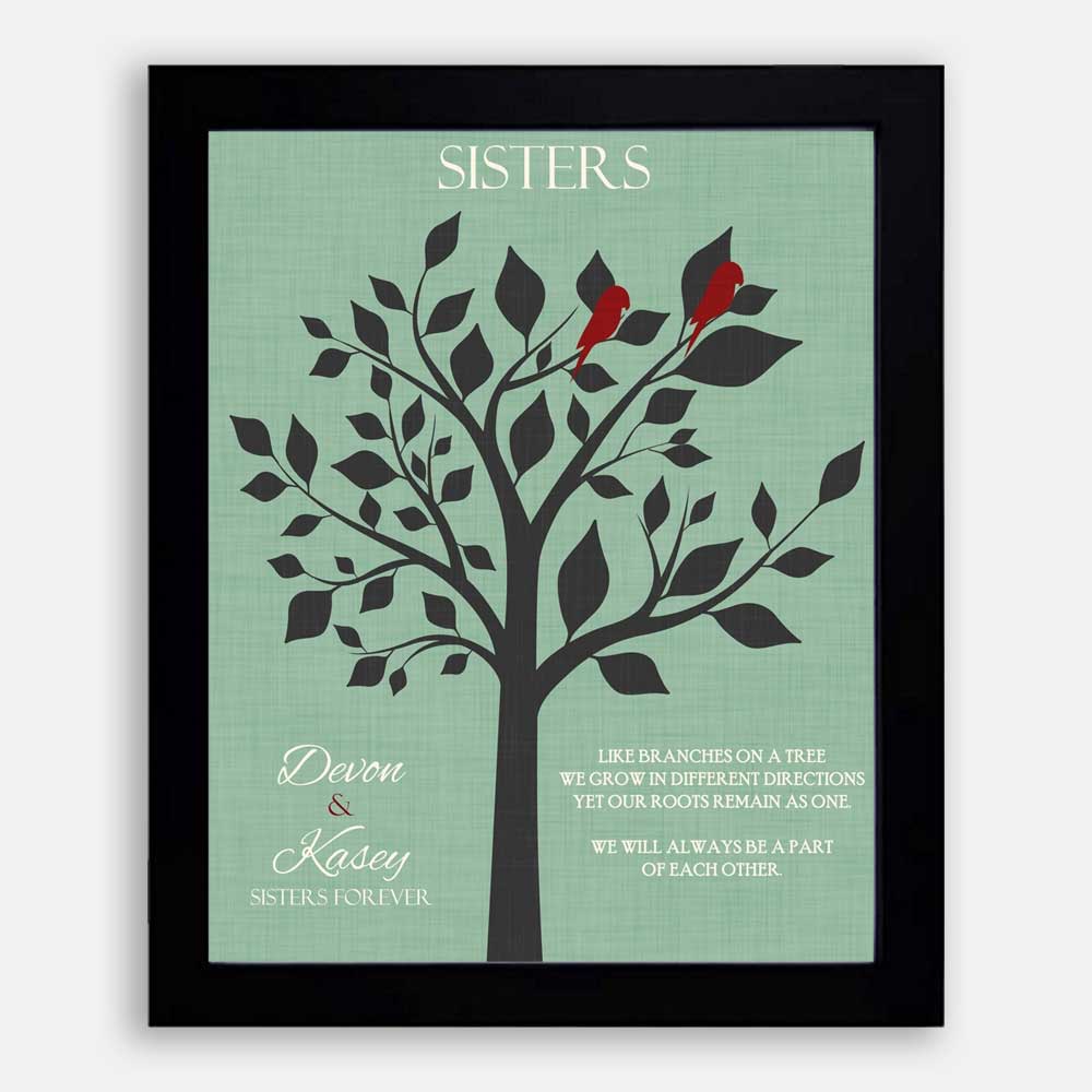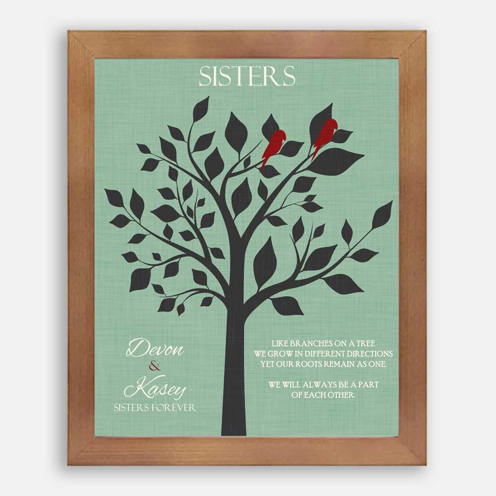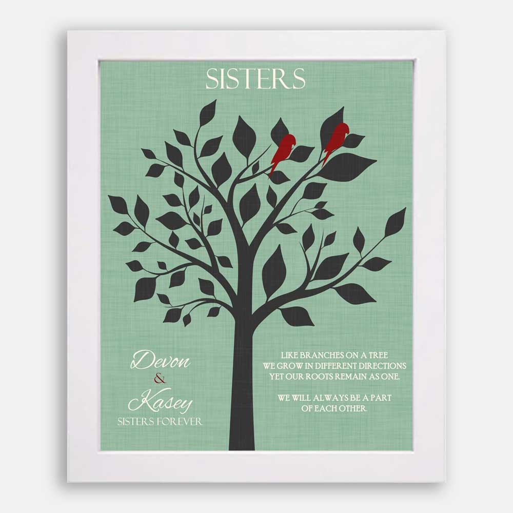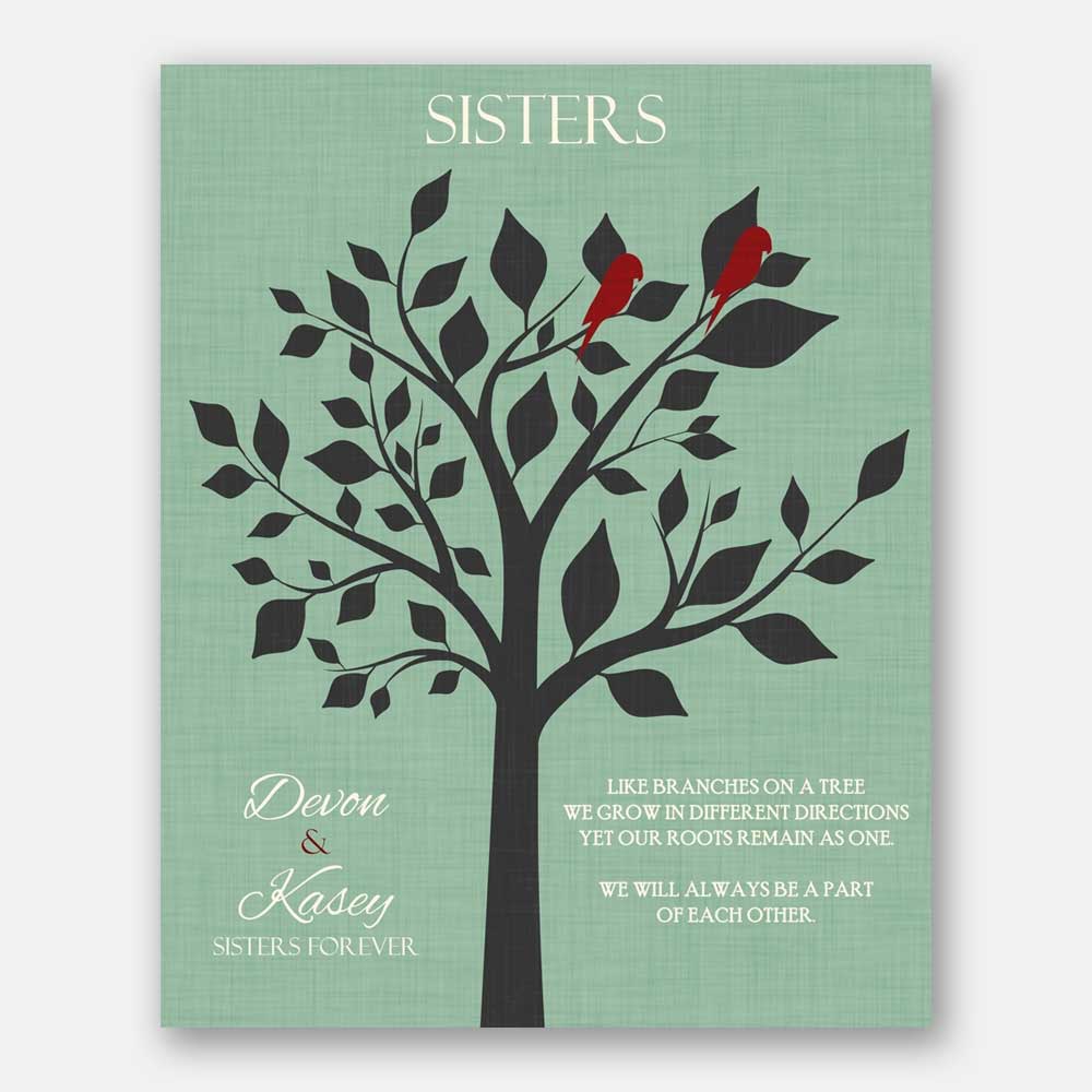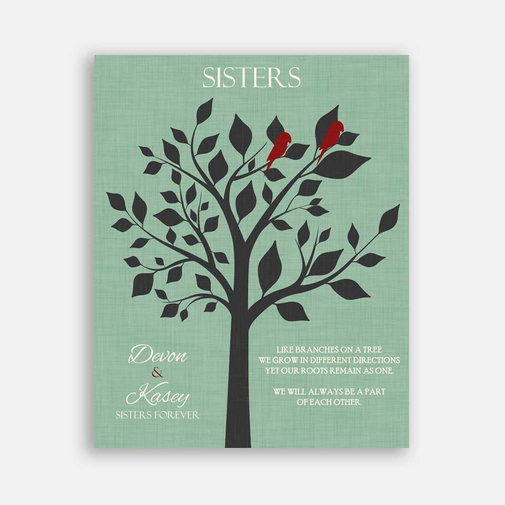 Sister of Bride Sisters Forever Charcoal on Green With Red Birds Like Branches on A Tree Special Sister #CWA-1072