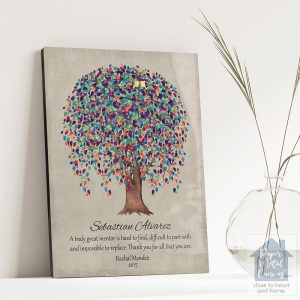 Uniquely personalized blue silhouette tree retirement gift for employee, promotion, achievement and other farewell occasions, featuring the depicted never underestimate the difference you made gift of legacy award. Create a deeply personal gift for any employee or Leader with your personalized names, date and text. Alternatively, this design may also be customized for an acquaintance farewell gift, promotion, achievement or completely custom events. Anything’s possible!